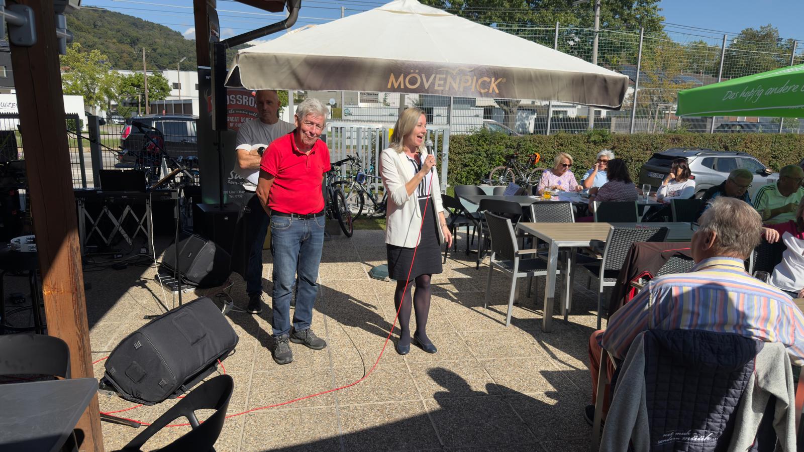 Ab Mittag füllte sich die Terrasse. Auf den Tellern: knusprige Grillhenderl und frisch gegrillter Steckerlfisch. Auf der Bühne: die Band „Cross Road“, die für ordentlich Schwung sorgte.