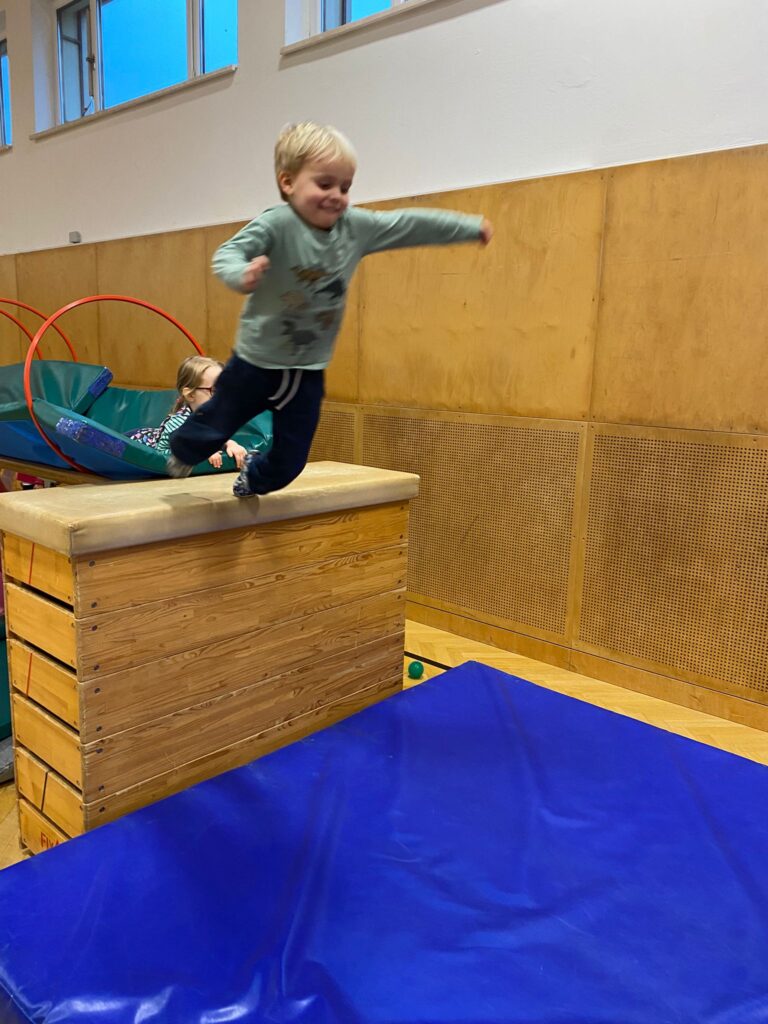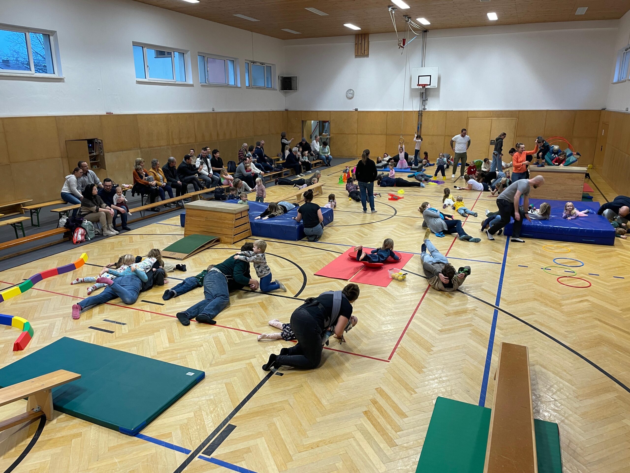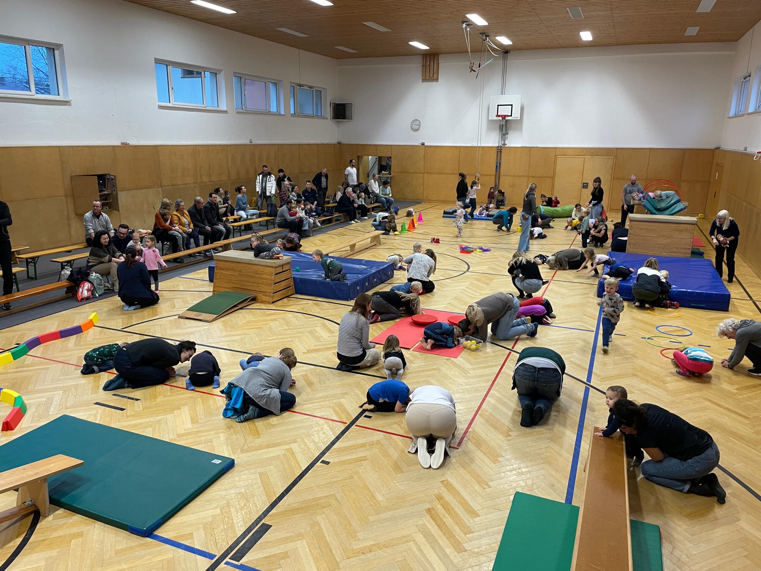 Schon zu Beginn war die Begeisterung groß: Die Kleinsten erkundeten die aufgebauten Stationen, kletterten, balancierten und probierten sich mit strahlenden Gesichtern an neuen Bewegungen. Die Eltern unterstützten eifrig und hatten sichtlich ebenso viel Spaß wie ihre Kinder.
